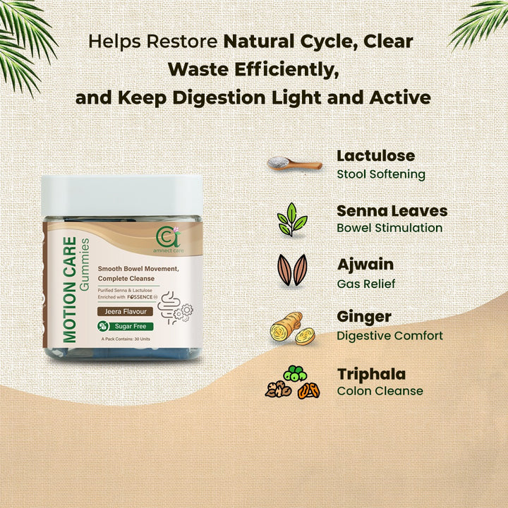 Enriched with Triphala, Ajwain, and Hing to reduce gas, bloating, and discomfort.